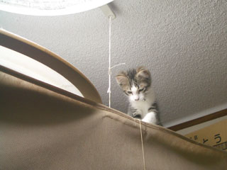 一人で大暴れしていたようで、唯一残っていた釣り竿みたいに先の長めの猫じゃらしが、すごいところに絡まっていました・・・