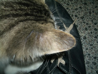 手の届かないところまで走っていき、一生懸命毛繕いしていました。