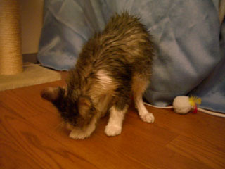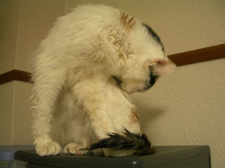 まこちゃんは、完全に乾くまで、ず〜っと毛繕いしていましたが、