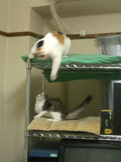 休み中。2匹はいつものように、追いかけっこを楽しんでいたようです。